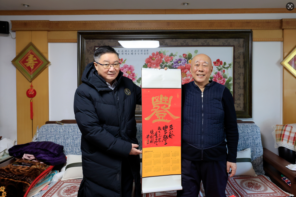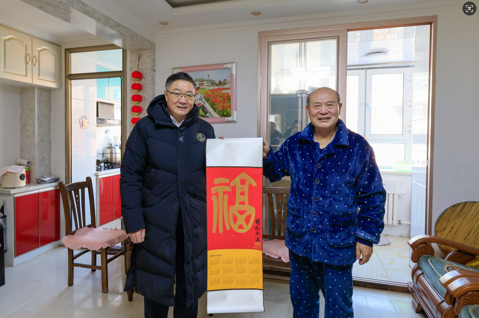 在老同志家中,赵国庆与他们亲切交谈,关切询问身体情况与生活近况,并转达了田辉书记、张希校长对全体离退休老同志们的诚挚敬意和新春祝福。他详细介绍了学校近年来在各项事业中取得的发展成绩和未来规划,衷心感谢老同志们为学校事业发展奠定的坚实基础和作出的重要贡献。交谈中,赵国庆认真听取了老同志们对学校工作的意见建议。临别前,他将由离退休书法家挥毫题写的“福”字赠予老同志们,表达对他们健康长寿,阖家幸福的衷心祝愿。