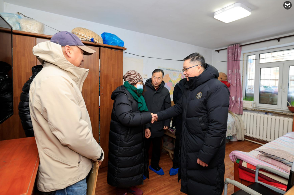 在看望特困退休职工时,赵国庆与职工及家属亲切交谈,详细了解家庭生活、健康状况与实际困难,关切询问冬季室内温度等情况,并将饱含心意的慰问品送到他们手中。他鼓励老同志们保持积极乐观心态,安心休养身体,并嘱咐随行人员持续做好关怀帮扶工作。