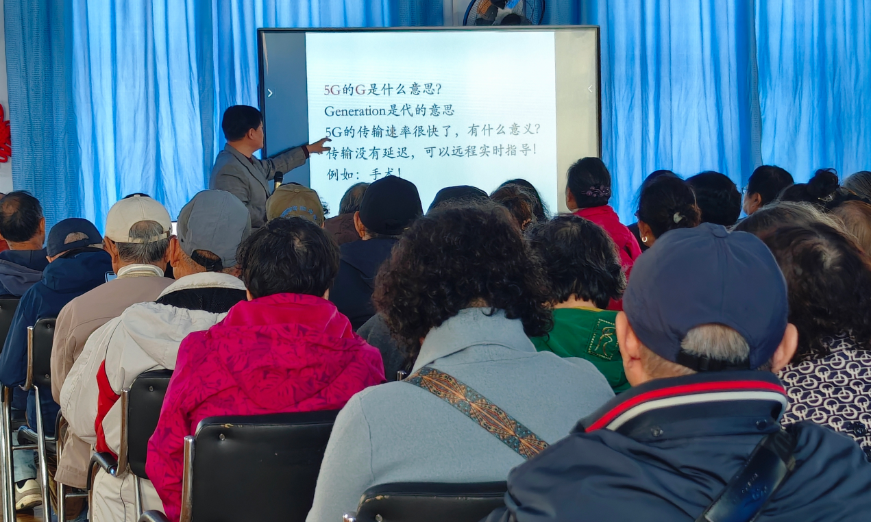 原公共计算中心副教授郑新为大家做了题为《微信使用基础及实用功能》辅导讲座。皆在帮助大家更好地掌握智能手机使用技巧,遵守微信群组使用规范,融入互联生活,避免上当受骗。郑老师首先从信息蚕包、垃圾信息概念、智能手机基本操作等方面带领老人们熟悉手机拨打电话、微信上网、观看视频等功能。接着,根据老年人对平时买药、打车出行、水电热气缴费的强烈需求,郑老师着重向大家讲解支付宝中的“医保码”买药;“长春E出行”打车坐公交地铁;通过微信如何使用“复兴壹号”小程序;手机丢失如何冻结手机号、支付宝账号和微信号等使用技巧。在讲解过程中,郑老师还谈到了几种常见的网络诈骗手段,他提醒老人们多动脑、多交流、多运动,日常使用智能手机时不随意点击不明链接,不轻易透露个人信息等,提高了大家的反诈防范意识。