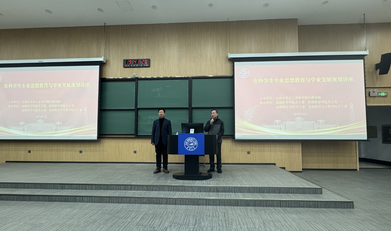 2025年11月19日,和平校区关工委工作指导组及动物医学学院、动物科学学院、植物科学学院、食品科学与工程学院4个学院关工委在中心校区敬信楼共同举办“农科学生专业思想教育与学业发展规划”专题讲座。活动由和平校区关工委工作指导组负责人张宁主持;学校关工委驻会委员、校教学督导专家丁洪浩研究员做了题为《立足当下 面向未来,打牢本科发展基础 厚积薄发有所作为》专题讲座;4个学院先后分两场次进行,各学院2025级600余名新生和辅导员参加了活动。