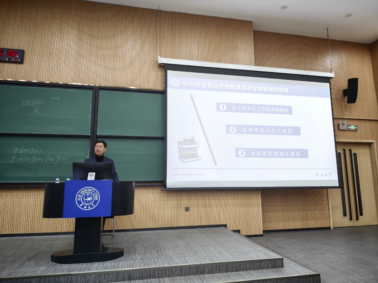 丁洪浩针对我校农科学生的专业思想实际和学科特点,结合自己40多年学农和从事农科教育与教学管理亲身经历和体会,从本人学农及专业思想转变过程、农科专业认识之我见、本科学业规划之建议三个方面,与同学们做了分享和交流。丁洪浩指出,新农科新发展新前景,给我们农科学子的学业和事业提供了新的机遇;党的二十大和二十届三中全会及四中全会“十五五”规划建议中提出的建设中国式现代化,给新时代大学生提供施展才华、拼搏奋斗的大舞台。丁洪浩倡议,作为农科学子,要学习袁隆平院士毕生奉献农业科技,刻苦钻研杂交水稻研究的科学精神;作为吉大人,要学习吉大先贤“北上精神”,献身党的教育事业;作为新时代大学生,要学习黄大年老师“心有大我,至诚报国”精神,不负时代,勇于担当,把个人事业和发展融入国家建设、民族复兴的宏图伟业中,积极贡献自己的力量。丁洪浩就农科学生的学业规划,结合我校农科专业领域培养的优秀科学家和优秀毕业生案例,向同学们提出了大学阶段做好角色转换、做到目标明确、保持进取精神、注重脚踏实地、坚持综合发展等五点希望和建议;并就大学四年、五年学业,提出了更有针对性的学业规划建议。